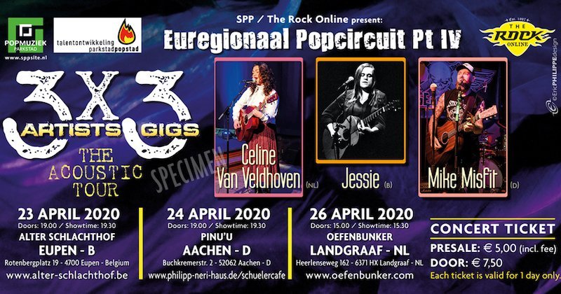 After 3 editions on the road with bands, we will be this edition on the road with 3 Solo Artists. 3 Live shows, 3 Locations, 3 countries in a row. As we started in Mai 2019 with Euregional bands like; Indicolite (NL), Vapour Eyes (B), Shot Down in Reno (D) Loxley Lane (B), Uncrook (D)Defenestarte (NL),Forger (D), Lost From The Start en A Minor Problem (NL) in Locations as; der Alter Schlachthof – Eupen (B), Pinu’u & Musikbunker Aachen (D) and de Oefenbunker in Landgraaf (NL). We will bet his edition “on the road” with ; Mike Misfit (D), Jessie (B) en Celine Van veldhoven (NL).