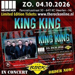 Een avond met King King staat garant voor geweldige muziek, topmuzikanten en vooral: een hele hoop plezier. Zodra frontman en gitarist Alan Nimmo het podium op stapt, steevast in zijn iconische kilt en met een grote glimlach, weet je dat het een bijzondere avond gaat worden. Met hun krachtige mix van blues, rock en soul heeft de band de afgelopen jaren een stevige live-reputatie opgebouwd. King King speelde talloze zalen en festivals plat en stond onder meer op het podium met namen als John Mayall’s Bluesbreakers, Thunder en Europe.